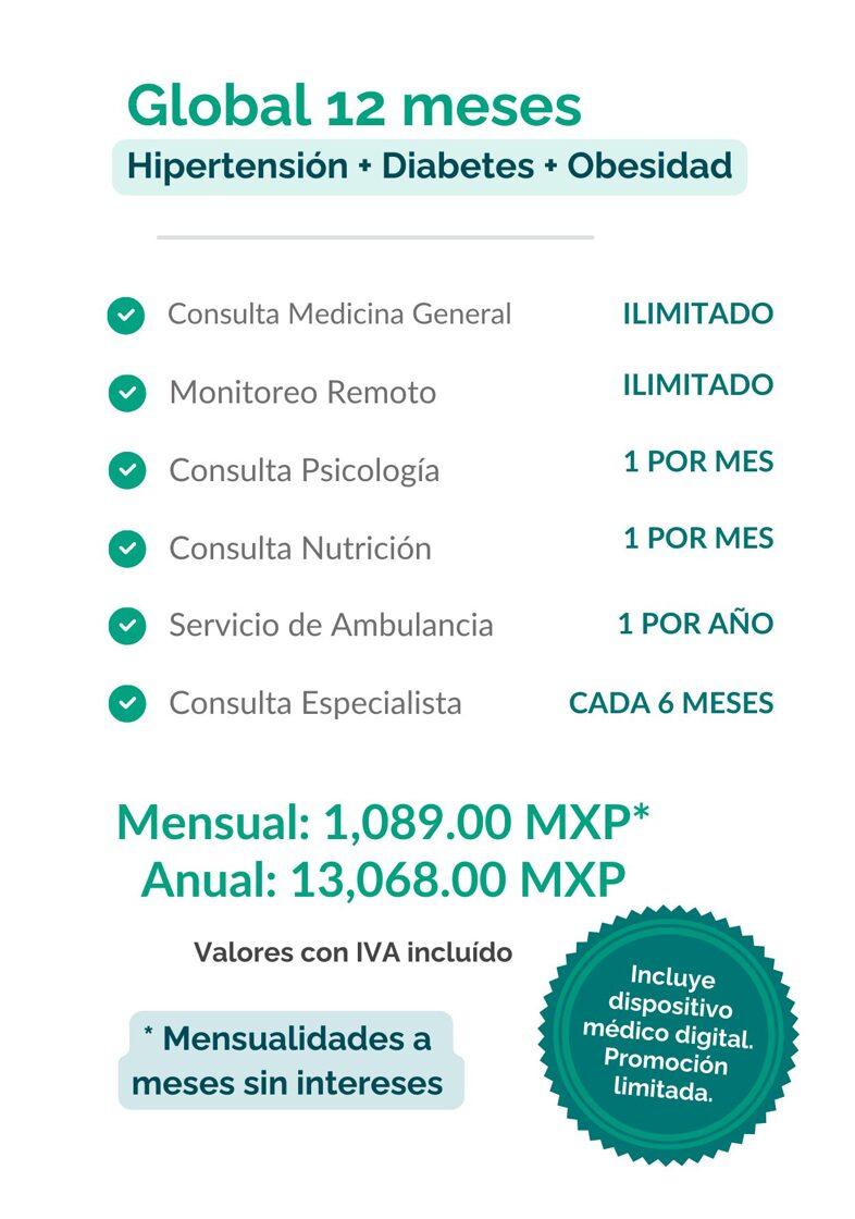 Incluye un dispositivo digital para el monitoreo de tu condición crónica.